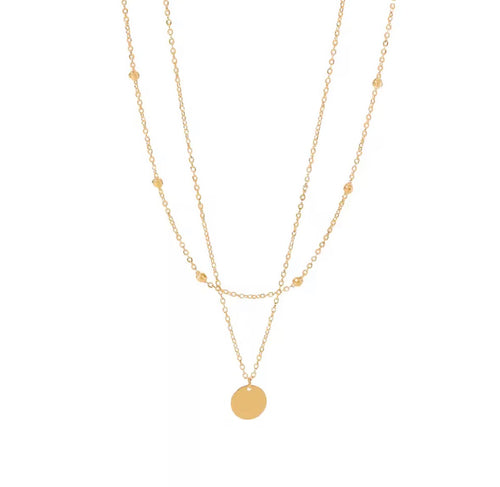 18K Gold Plated Double Layer Necklace – Waterproof Stainless Steel Mini Bead Chain with Disc Pendant | Sabrina & Shine